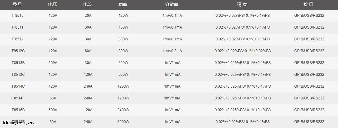簡要描述 :IT8500系列艾德克斯可(kě)編程直流電子負載具有ji佳性價比(bǐ)的同時具備多種操作模式和測(cè)試(shì)功(gōng)能 ,滿足客戶(hù)多元化的測(cè)試(shì)需(xū)求:可(kě)編程List輸(shū)出模式 ,定電壓 、定功(gōng)率、定電流、定電阻模式 ,遠端測(cè)量、短路(lù)測(cè)試(shì)、電池(chí)測(cè)試(shì) 、動態測(cè)試(shì)功(gōng)能 。該系列具備良(liáng)好的低(dī)電壓帶載特性 ,提供高效率、高精(jīng)度的測(cè)試(shì)解決(jué)方案 ,可(kě)選配USB/RS232/GPIB通訊接口(kǒu)。